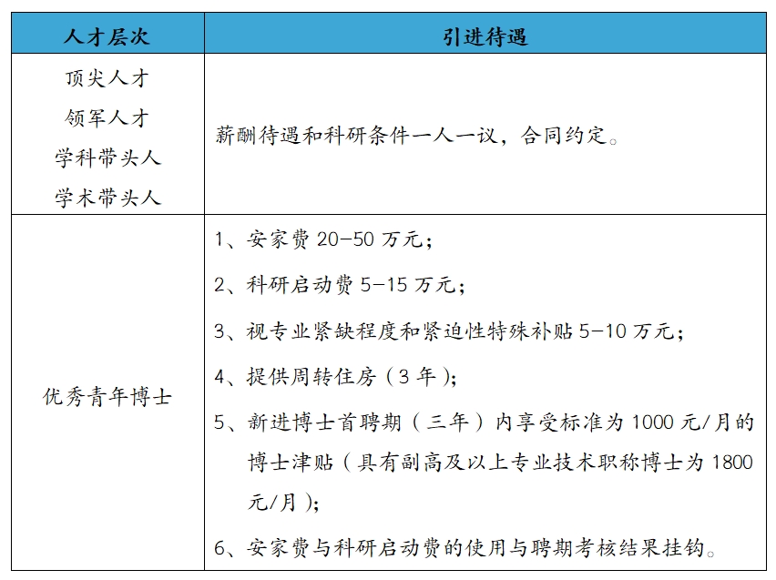 2、领军人才年龄一般不超过55周岁;优秀青年博士年龄一般不超过45岁,特别优秀者年龄可适当放宽;