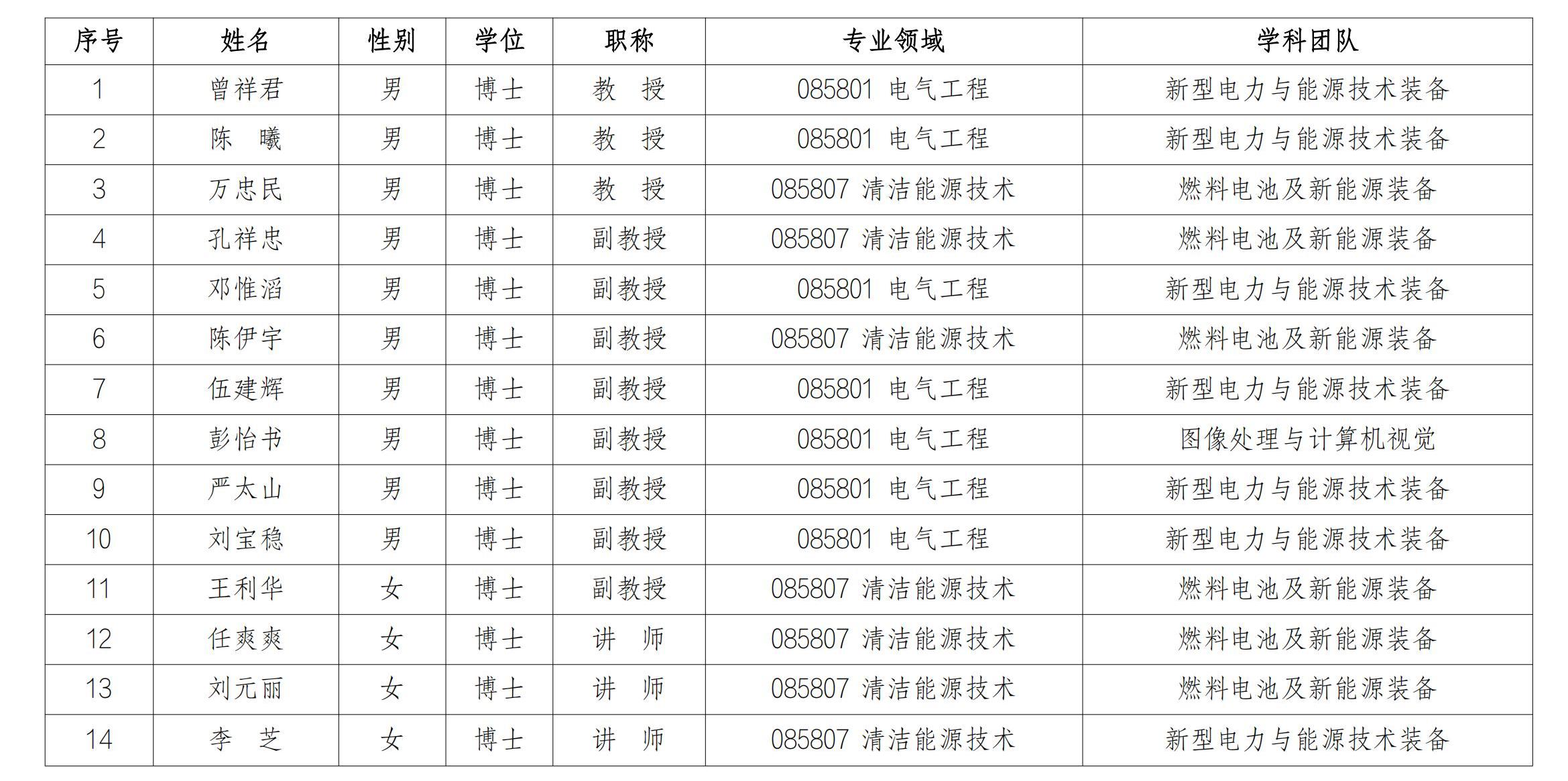 能源动力专业硕士点研究生导师名单
